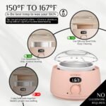 • WAX READY IN ONE GO – Only one step and wax is ready to serve your SKIN! Simply rotate the knob to your perfect spot, e.g., one may figure out that 165°F is best for waxing her legs. It is NORMAL for the thermostat to go up and up. This is to allow the wax heater to fully warm up. It will automatically cool down to your desired temp.